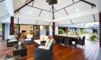 We stayed for 3 nites in villa 105 as part of a wedding party. The villas are beautiful, there were 4 big identical bedrooms on top floor, all with balconies, ensuite bathrooms (showers only, no bath), king beds and individual air con units in all 4 bedrooms. Downstairs there was another smaller room with a king bed and TV, no air con and no ensuite. There is a powder room (toilet) downstairs for guests but no full bathroom which is silly as obviously there is a bedroom so ppl were staying there, but they had no place to shower and had to use one of the bathrooms in the rooms upstairs. Poor design there. There was a full laundry and kitchen as well, large outdoor entertaining area and a private pool with sun loungers around it. The pool was good, half of it was steps so good for kids and half was deep for the adults. The kids in the party spent most of the time in the pools. Place was clean and tidy, housekeeping came everyday. Toiletries were not refreshed as we were told villa guests are provided toiletries on arrival and after that it’s up to guests to purchase own toiletries. You are also supposed to wash and dry your own towels as you have a fully functional laundry. But we were there for a wedding and were extremely busy with wedding related functions and preparations so didn’t have the time to do that. Housekeeping were nice enough to wash and dry our towels when they came.