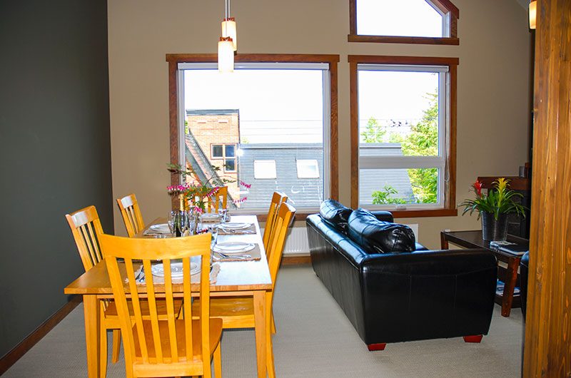 The top-floor living areas have an open floor plan and the dining area is located just a few steps from the living room seating area. This is an inviting setting to tuck into a home cooked meal, prepared in the adjoining kitchen which is fully equipped for all your culinary needs.