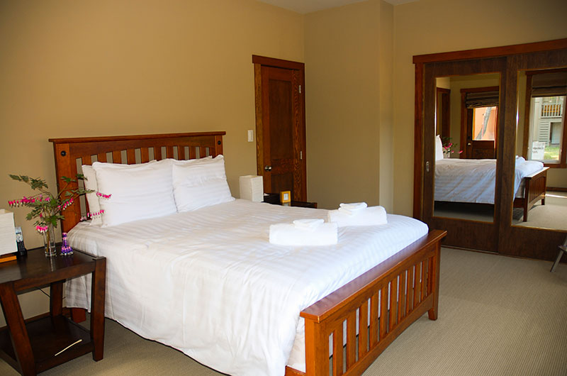 Niseko Creekside B has three bedrooms. All bedrooms are furnished with split beds which can be set up either as a king-sized bed or two single beds as needed. There are two bedrooms on the middle floor and one bedroom is housed upstairs on the top floor.