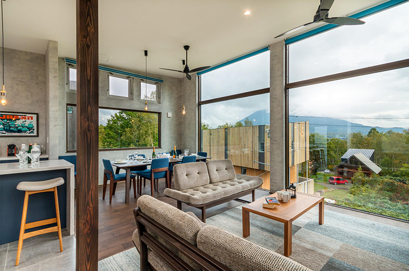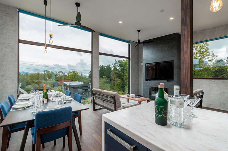 Off Piste Chalet offers ample space with rooms spread over three levels. Full-wall windows and streamlined design give the chalet a clean, contemporary look, with well-chosen furniture and textiles adding a touch of warmth always welcomed amidst Niseko’s famous snow.