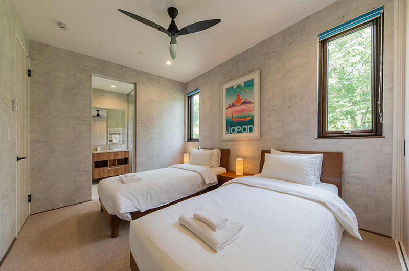 The third bedroom is located on the chalet’s top floor. Similar to the second bedroom, this room also features a split bed (one king or two singles) and an ensuite bathroom with a shower.