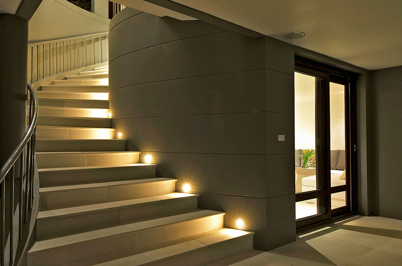Walk down to the living living room via a sweeping staircase. The open concept living-dining-and-kitchen area is the social heart of Panorama Summit. The living room has a U-shaped sofa – perfect to curl up to listen to the stories from your friends after their day out in Samui.