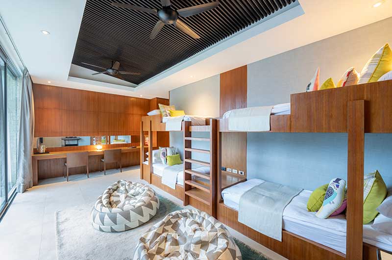 Raku Samui has five bedrooms. Two rooms have king-sized beds, two with queen size beds and one room has two sets of bunk beds which can sleep up to four kids.