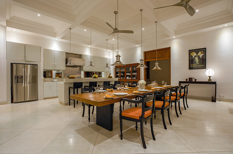 The villa houses a massively spacious dining table, which can comfortably accommodate up to 14 guests. Thanks to the property’s open-plan architecture, the grand dining room is an opulent experience all of its own, complete with beautiful fresh views of the surrounding nature. The dining room is adjoined by a large well-equipped open-plan kitchen where guests can prepare elaborate meals or opt for a laidback summertime cuisine for their meals instead.