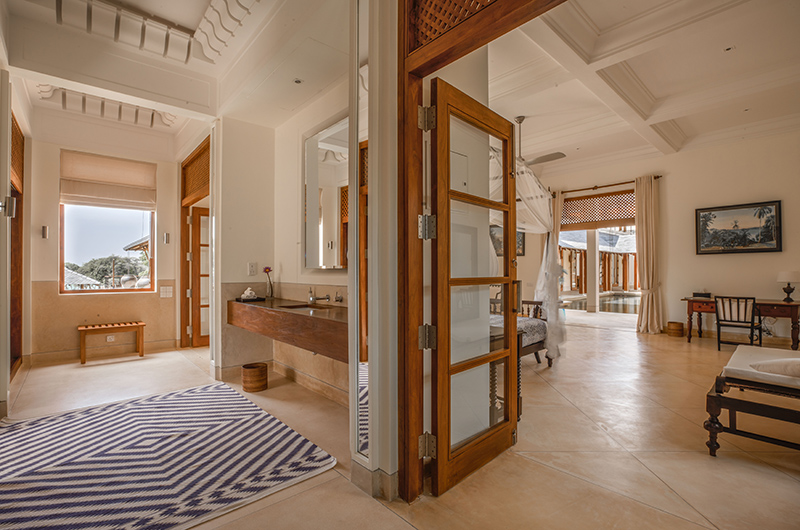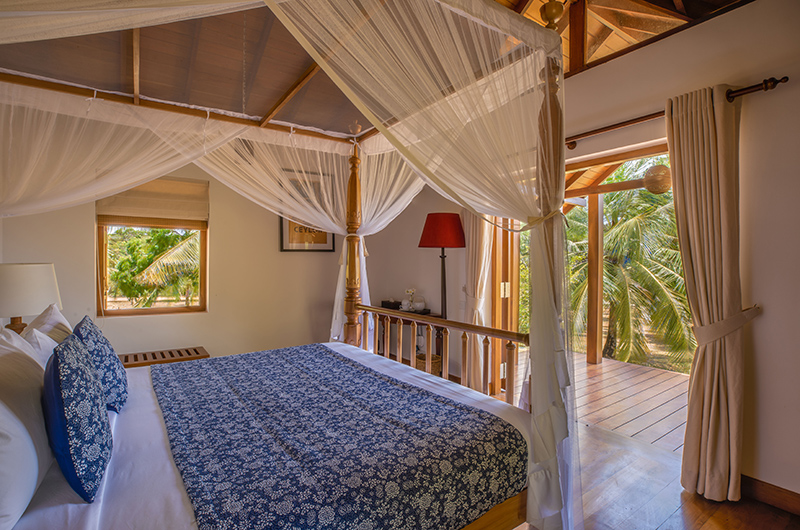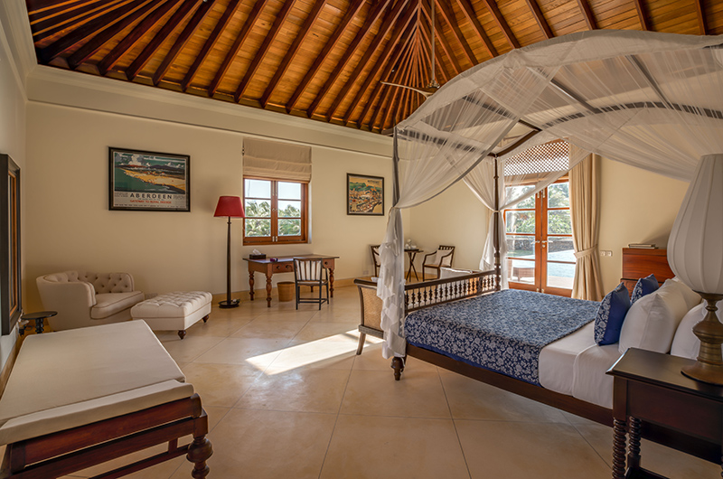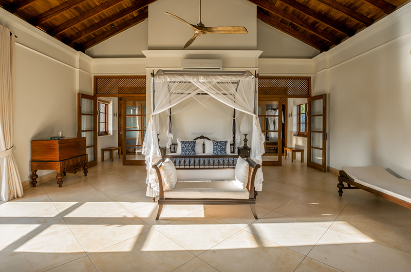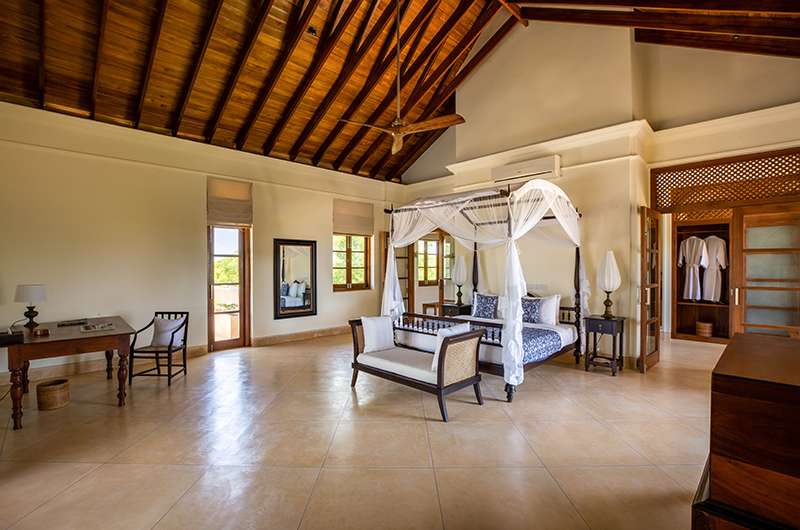The spacious villa houses seven bedrooms. Ranawara houses five suites, each one furnished with a king-sized canopy bed. Three of the rooms are housed on the ground floor and two more suites are housed on the villa’s first floor. Two additional guest rooms are located in a separate annexe. Both rooms are furnished with a king-size four-poster bed and are adjoined by an ensuite bathroom each.