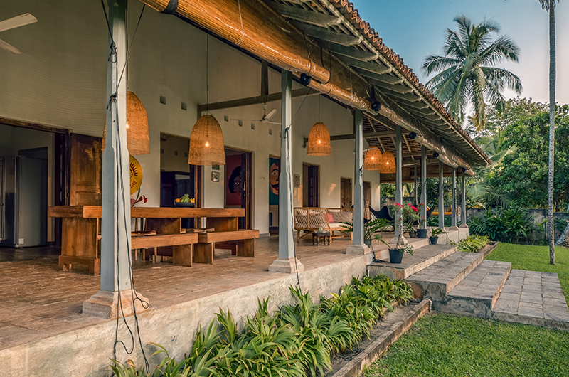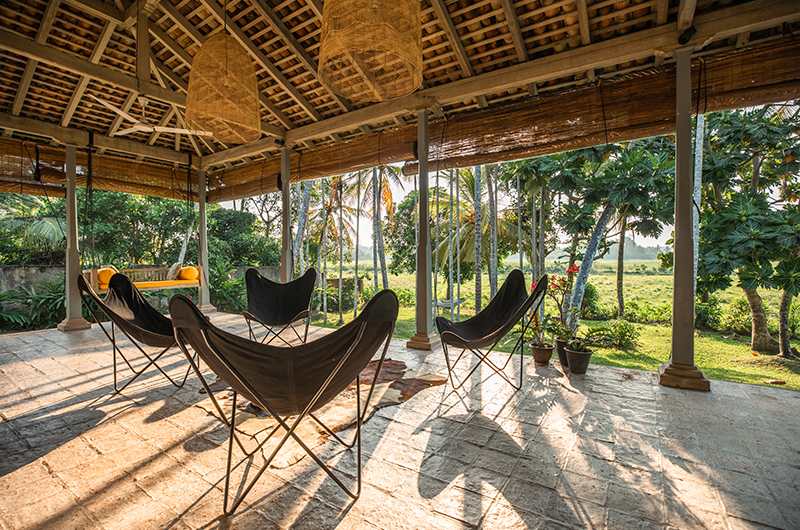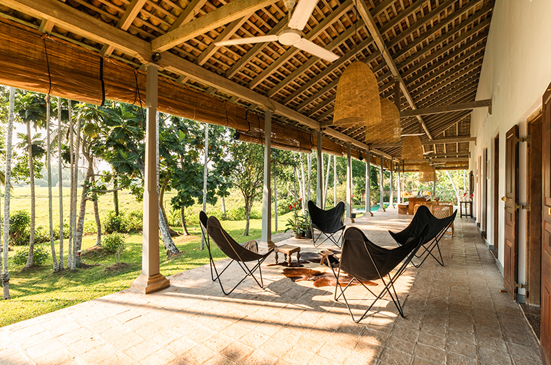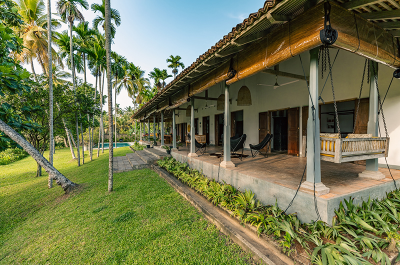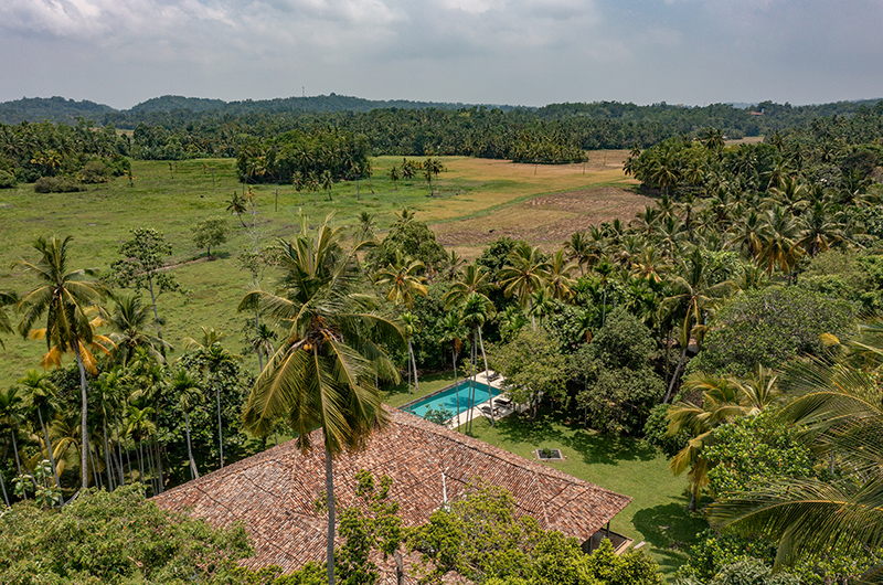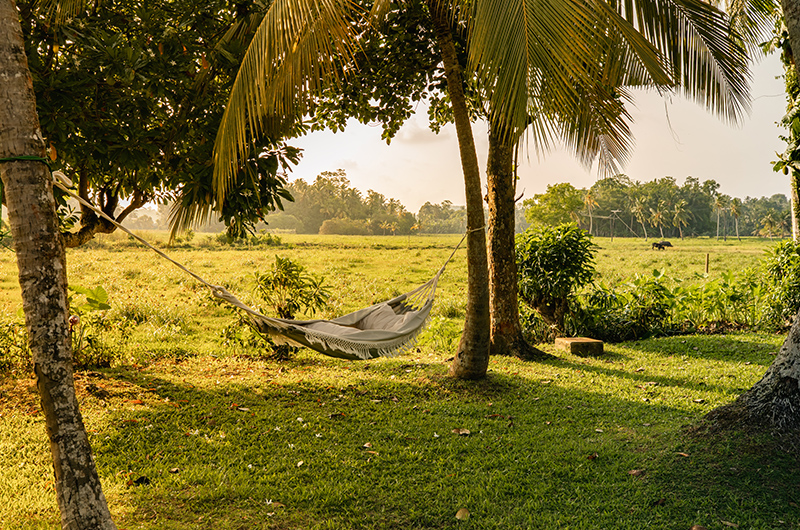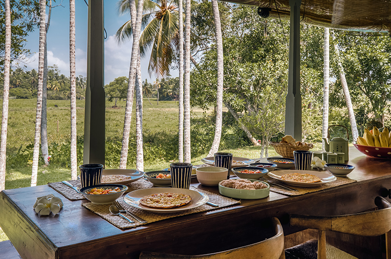 Rice House is set amidst tropical gardens that feel almost magical. In this Sri Lankan Eden, you are surrounded by the peaceful sounds of nature while dreamy palm trees sway gently in the breeze which sends ripples across the zero-edge swimming pool. If you’re lucky, you might just spot a peacock rustling around the garden. The pool opens to postcard-ready views of the villa’s namesake – idyllic rice paddies glowing in endless shades of green. You could easily spend an entire day lounging on one of the sunbeds by the pool, admiring the serene beauty that surrounds. If you prefer a place in the shade, don’t worry: the villa has two breezy verandas to choose from. Feeling a bit more active? The lawns are perfect for a game of badminton or boules – just ask the staff to set it up for you.