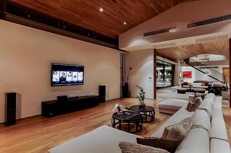 Villa Malee Sai has six bedrooms: four with king-sized beds and two rooms with two single beds each. A queen-sized sofa bed is available against an additional fee. The villa has two master bedrooms with amazing ocean views, walk-through wardrobes and spacious ensuites. Two guest rooms on the ground floor share a bathroom with a bathtub between them. Two upper floor guest bedrooms have private ensuites.