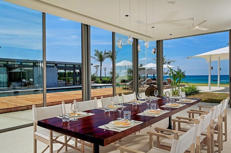 Villa Essenza is a modern beachfront villa with six bedrooms and a massive 25-metre swimming pool. The villa has beautiful contemporary furnishings and floor-to-ceiling windows offering endless views of the ocean.