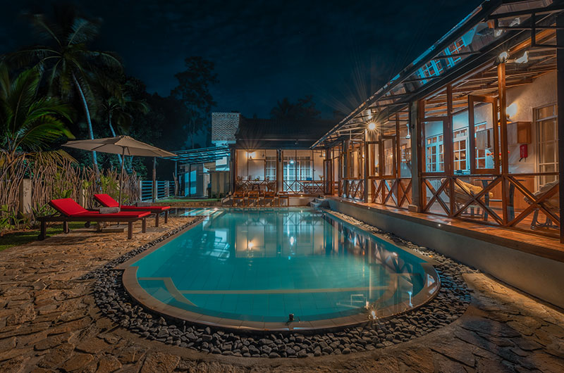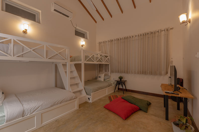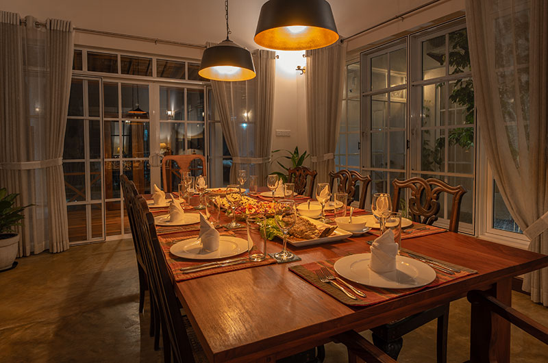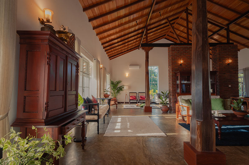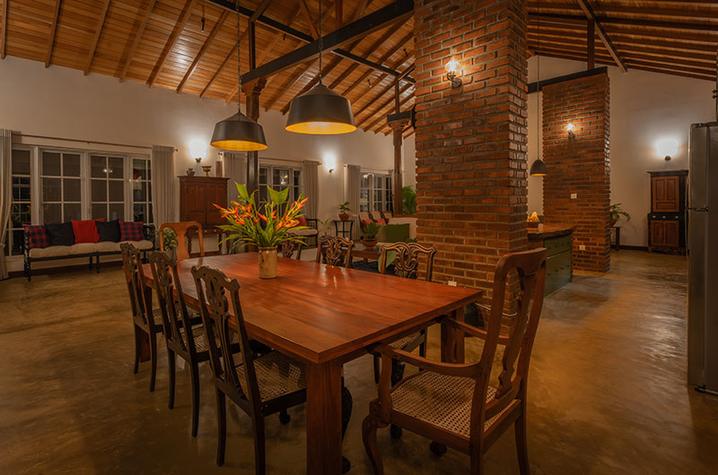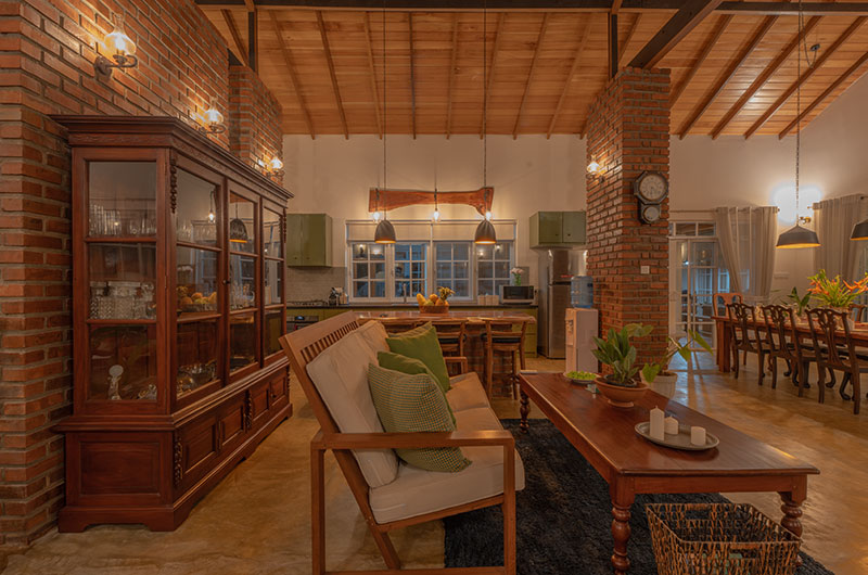 Sevena Villa offers ample lounges where guests can relax and spend some quality time. Thanks to its exposed brick walls and high vaulted ceiling, the main living room has a fabulous “Sri Lankan home meets Brooklyn loft” feel to it. There are plush sofas to lounge on, interesting books to flip through, and a large TV to keep everyone entertained on cosy nights spent in.