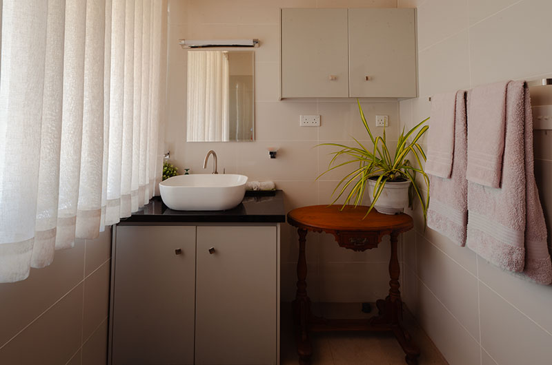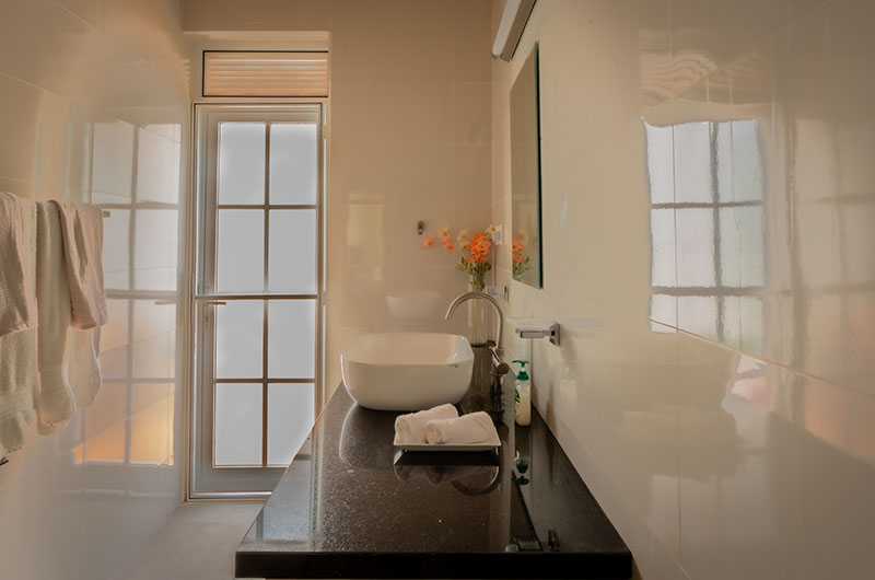 Sevena Villa features six bedrooms. The rooms have a classic décor which relies on timeless furniture, a tranquil colour scheme, and French windows offering lush views of the garden. One room features a king-sized bed, four rooms come with queen-sized beds, and one room features two sets of bunks. The six bedrooms are complemented by three bathrooms.