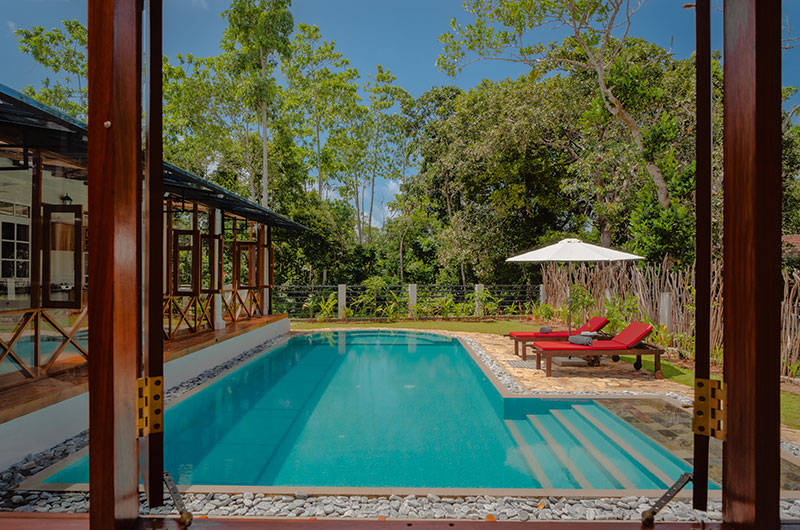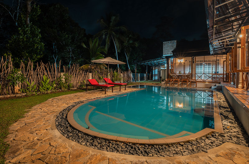 The villa is completely immersed in lush Sri Lankan nature, with luscious greenery and exotic fauna creating the most magical backdrop for your stay. The vast lawns are ideal for sipping a cup of tea or practicing a bit of yoga. The villa’s beautiful turquoise pool is surrounded by an array of sun loungers, with the adjoining veranda offering a blissful place in the shade.