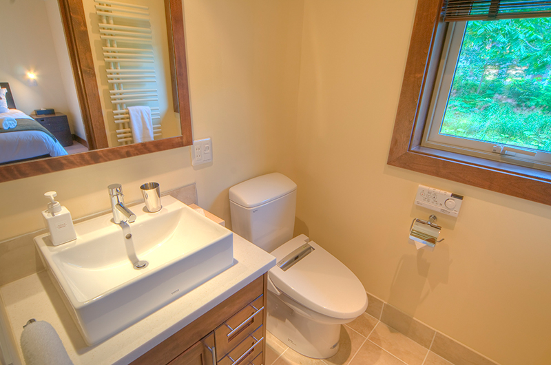 Shika has five bedrooms. Two rooms have queen-sized beds and three bedrooms have split beds which can be set up either as a king-sized bed or two single beds as needed. One bedroom is located on the main floor next to the living areas and four bedrooms are located upstairs.