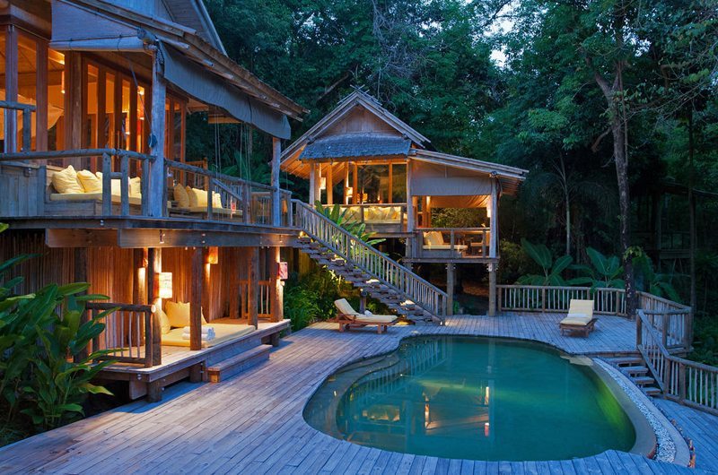 Soneva Kiri is a heavenly jungle hideaway located on Koh Kood, a gloriously underdeveloped island just southeast of Bangkok. The environmentally friendly high-end villas range from intimate one-bedroom hideaways to an elaborate six-bedroom mansion. Each one of the flawless abodes boast a sublime infinity pool, perfectly complimented by the palm trees swaying above in the breeze. The design is a whimsical mix of castaway chic and opulent luxury, with furnishings raining from decadent alfresco bathrooms to delightful tree houses for the kids.