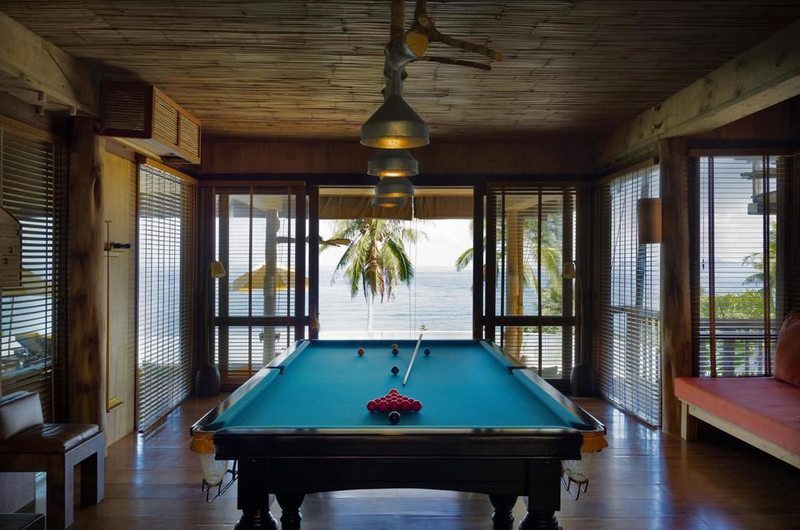 The kids’ room houses sturdy bunk beds – but the highlight has got to be the waterslide launching off from the room’s terrace and landing straight into the villa’s own private pool! For relaxed get-togethers, the beachside property offers plenty of terraced areas scattered throughout the estate, including a generous alfresco living and dining area. In addition to the beautiful free-form pool, the villa offers guests access to a deliciously private stretch of the pristine beach.