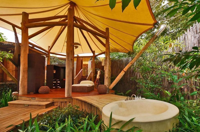 The one-bedroom villas offer the ultimate setting for a romantic jungle getaway. Each of the villas boasts a beautiful private pool in the shape of a half-moon with plenty of room to lounge about by the pool and the lavish terraces. True to the resort’s eco-friendly approach, the villa’s feature sustainable elements reaching from the sustainably-sourced wood used in the buildings to the organic cotton sheets draped over the dream-soft canopy beds.