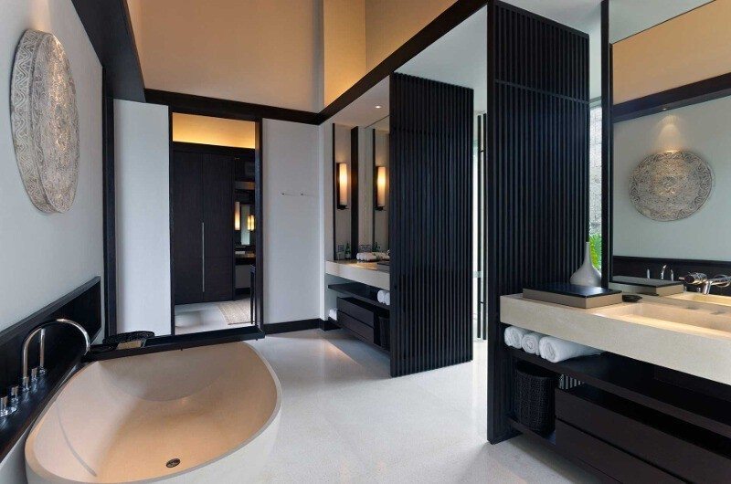 The villas look out to the ocean, with a generous private pool offering an added touch of luxury. The elegant living areas flow effortlessly between two levels, accentuated by Zen-like water features. The master bedroom occupies its own pavilion and features a king-sized bed, private living areas and a grand ensuite bathrooms. The two guest bedrooms are housed side by side, offering a great family unit with one room furnished with a king-sized bed and the other with two single beds.