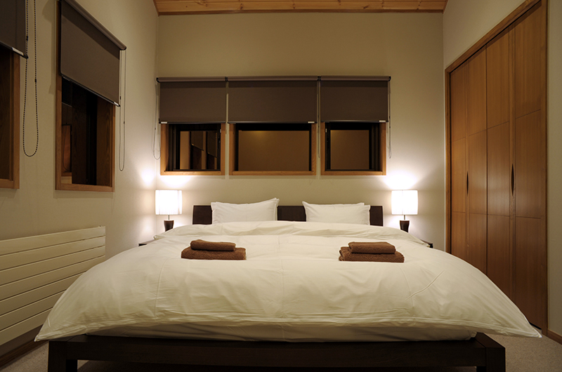 Starchase has four bedrooms. Three bedrooms have king-sized beds which can be also be configured as twin singles, whilst a tatami room (traditional Japanese bedroom) can be equipped with up to four futon mattresses. All rooms enjoy private ensuite bathrooms. Two rooms are upstairs and two are downstairs.