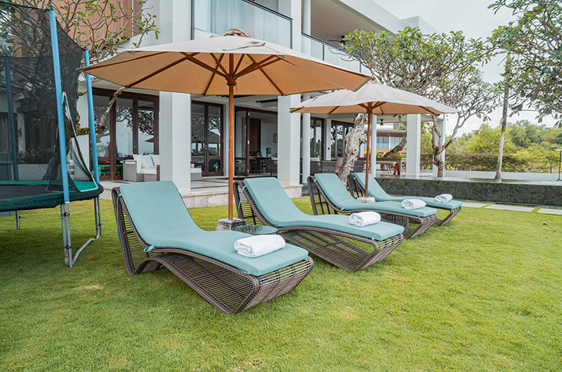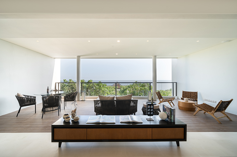 Villa Surga Two is a seven-bedroom villa spread out over three floors, accommodating up to 14 guests. The bright and airy living space is located on the villa’s upper level. The open plan room houses a generous dining table as well as an ample seating area complete with plush couches and sleek armchairs. The villa’s massive pool is no joke – in fact, it’s an attraction in and of itself! The pool measures a whopping 21 x 6 metres and allows guests to enjoy breathtaking views over the surrounding area, all the way out in to the ocean.