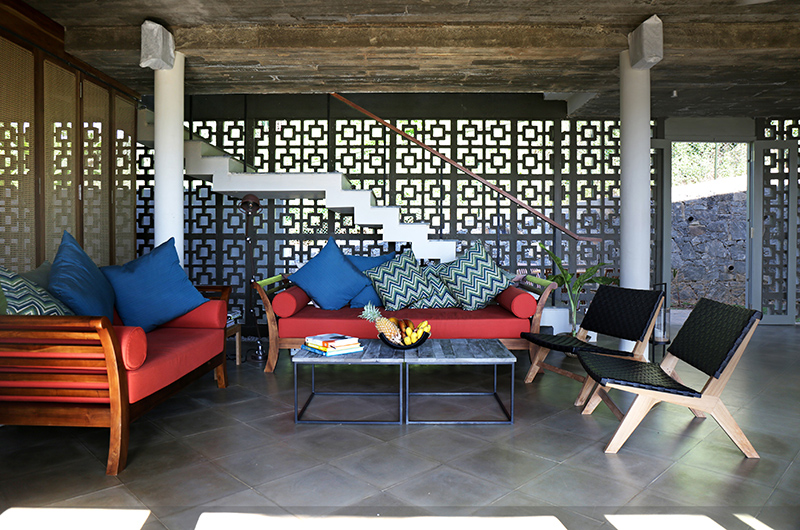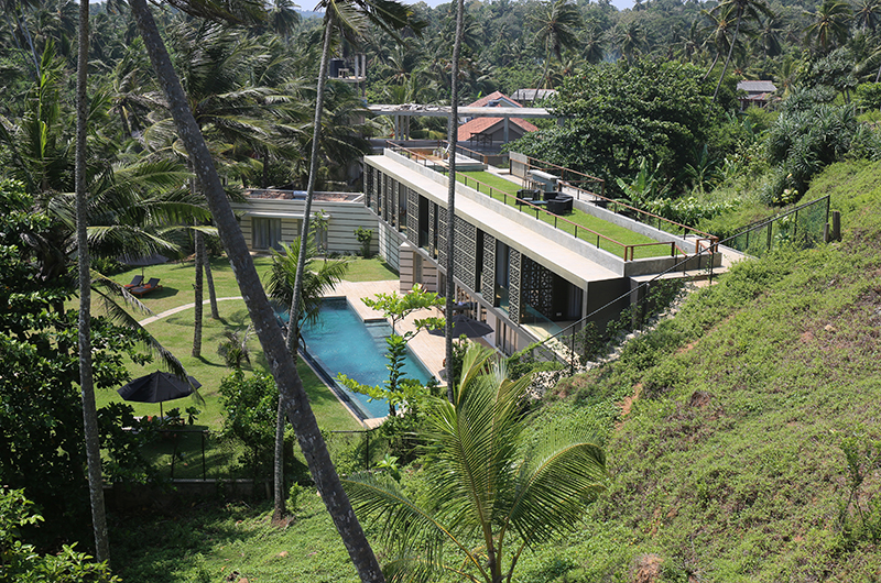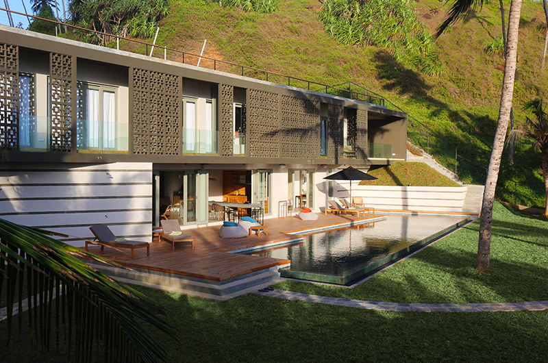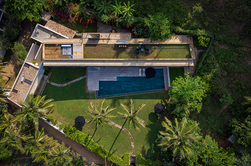 Talalla House is a seven-bedroom villa that’s built over three levels. The ground floor houses the living and dining areas, swimming pool and three bedrooms. The first floor houses four more bedrooms and a terrace which can also be used as a yoga space. The top floor houses the rooftop terrace and vegetable garden.