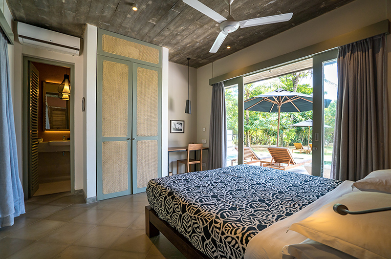 Talalla House has seven bedrooms. The five bedrooms are furnished with a king-sized bed and the other two bedrooms are furnished with a queen-sized bed. There are three bedrooms on the ground floor and four bedrooms are housed up on the first floor. Two of the ground floor rooms are housed in a seperate pavilion to the side of the pool.
