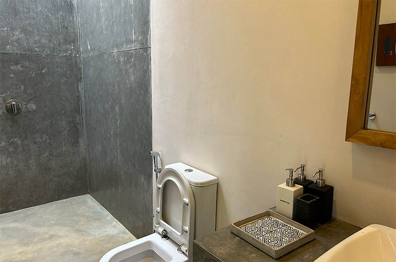 Pure bliss. Step from the living area into the garden and pool area where there’s a path that takes you through a gate right onto the beach. The pool is incredible, long and deep, perfect for a pre breakfast or sunset dip. Sitting at breakfast or lunch, we were treated to regular visits in the garden by troops of monkeys, chipmunks, kingfishers and many other birds dropping in to feed on the fruit we would leave out for them. The location was perfect for us, especially since we had hired Royal Enfield motorbikes (awesome experience) giving us total freedom to explore. That said, even without your own transport, the villa staff can arrange tuk-tuks or taxis at a moment’s notice. About 20 minutes away is Hiriketiya, a relaxed surf town with a great selection of beach bars, restaurants, and shops.