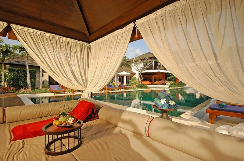 The massage pavilion is a blissful space for enjoying in-villa massage and other pampering treatments with views looking over the lush gardens.