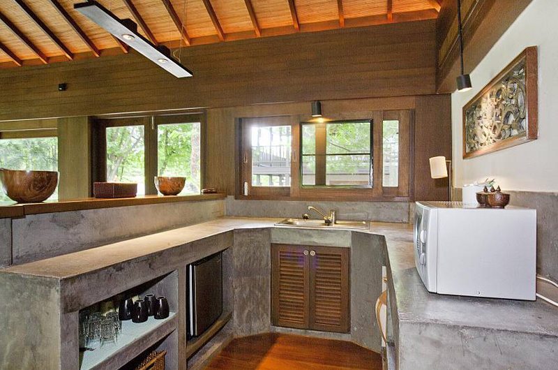 The dining pavilion is a beautiful open-sided space overlooking the villa’s swimming pool, with a long dining table seating 16 guests with ease. The upper dining sala is another beautiful place for enjoying meals with friends and family, with a long dining table looking over the villa’s tropical grounds.