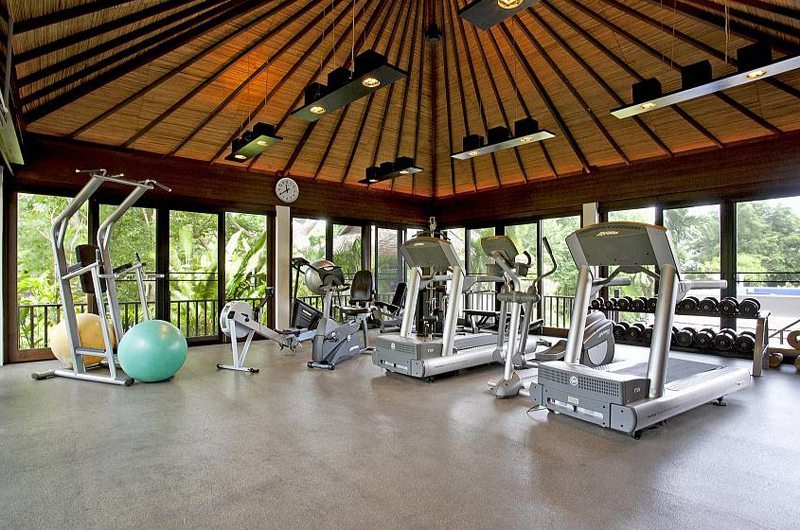 It’s easy to stay fit while staying in this grand villa with a well-equipped gym catering to every fitness buff’s needs. Lined with full-wall glass, the gym includes extensive cardio equipment, weights, exercise balls and more, with a wall-mounted TV providing entertainment while working out.