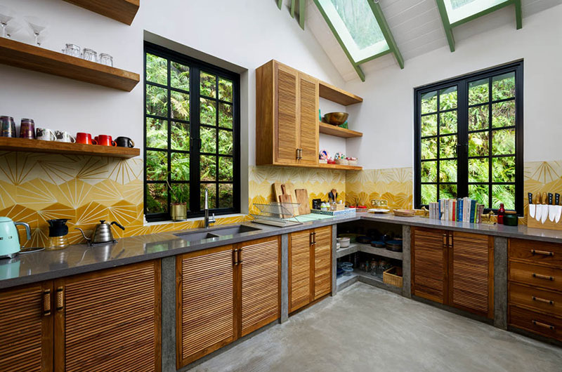 In true tropical fashion, you can enjoy your meals outside on the veranda where a timber dining table can accommodate a group of six. This shaded spot is a wonderful place to enjoy great meals surrounded by amazing green vistas. Inside, you will discover a well-sized kitchen fitted with all the necessary appliances and kitchenware.