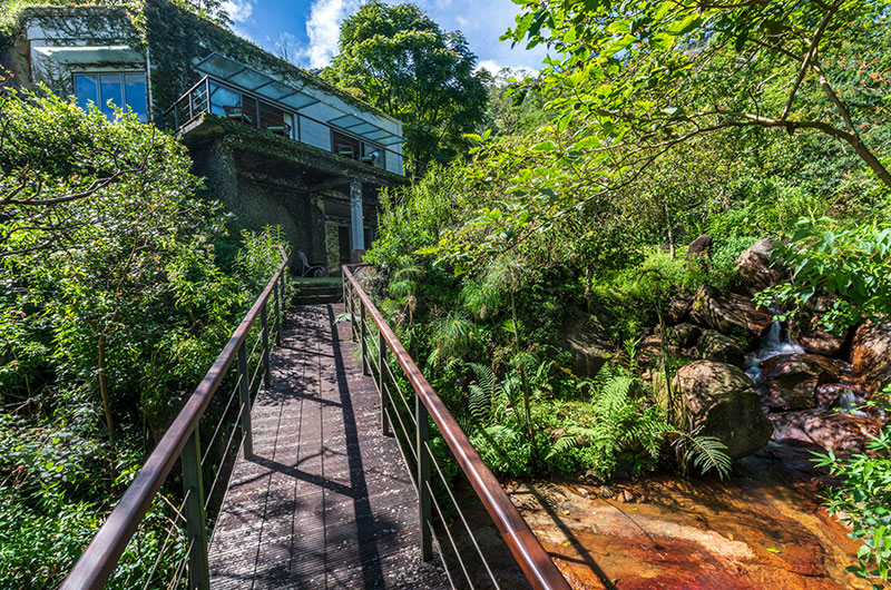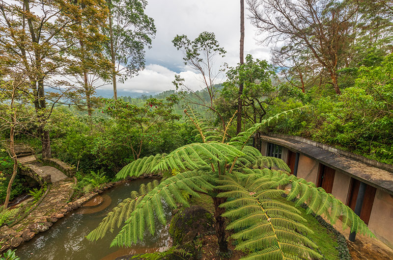The Cavern is located in Agrapatana in the Sri Lankan highlands. Surrounded by 50 acres of lush forest, the property immerses you in the wild beauty of Sri Lanka. Central Sri Lanka is known for its fragrant tea fields, exotic wildlife, and sacred temples. This is the ultimate place to truly get away from it all and reconnect with nature. The villa has its own onsite farm where guests can enjoy guided tours. If you do feel the call of civilization, the city of Nuwara Eliya is about 75 minutes away.