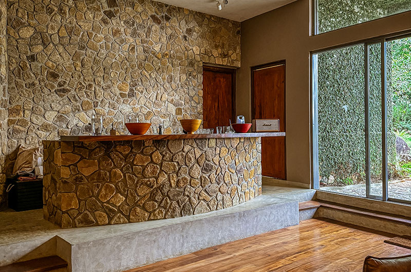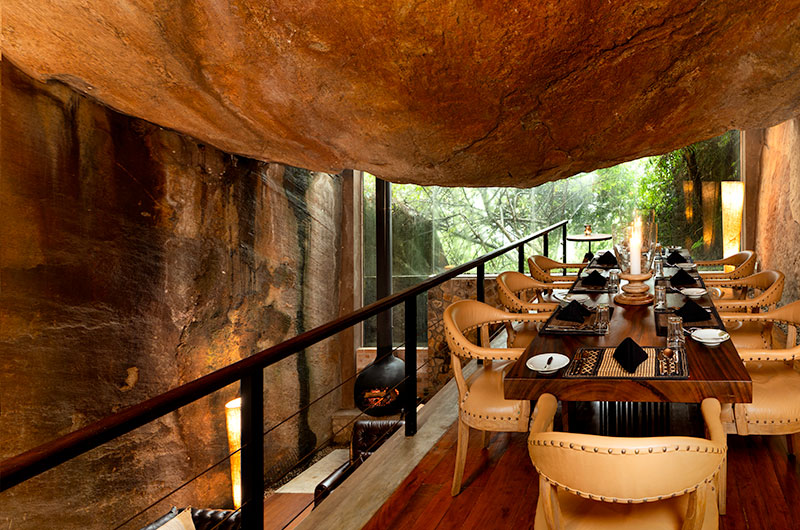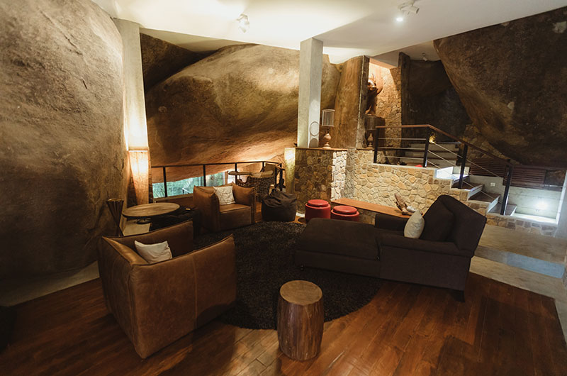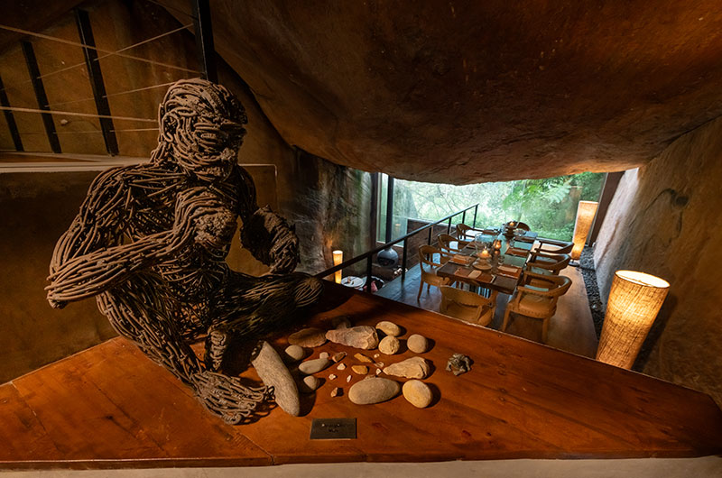 This is undoubtably one of the most unique and beautiful living rooms in Sri Lanka. Set within the cave, the room features natural stone walls and ceilings which feel like natural works of art. You can take in this spectacular setting while relaxing on the plush sofa and cushy armchairs, with a stunning suspended fireplace adding a warm glow. There’s also a large TV to keep you entertained – but in a place this unique and amazing, we suspect you’ll have little use for it.