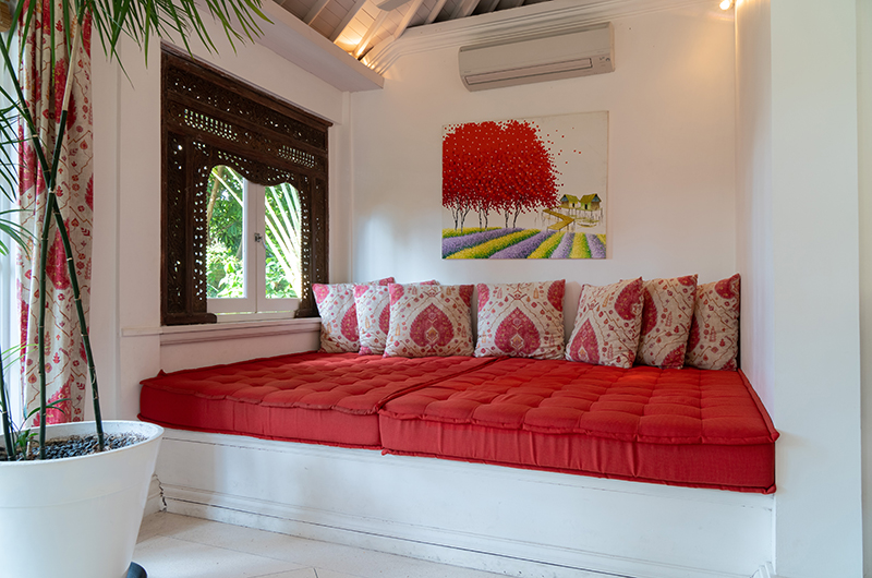 The sixth bedroom is located in the same pavilion with bedroom 7. This room has two single beds which can also be set up as a king-sized bed if needed. The room has an ensuite bathroom with an indoor shower and a plunge pool.