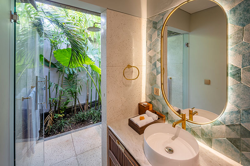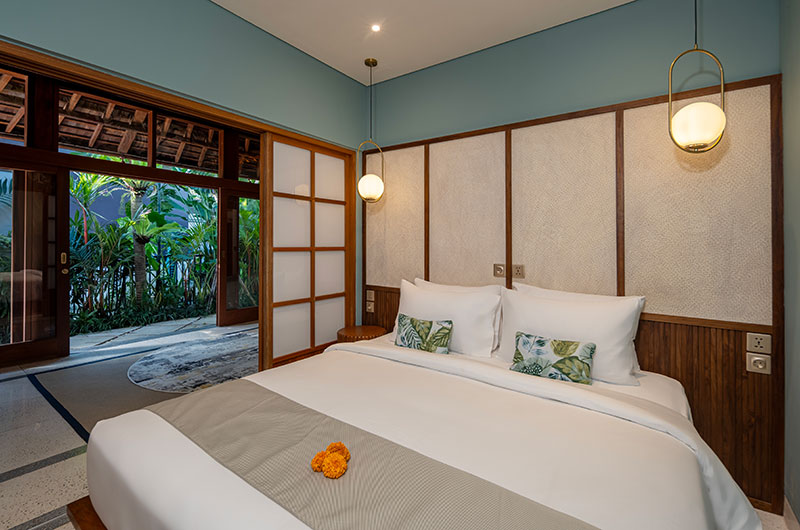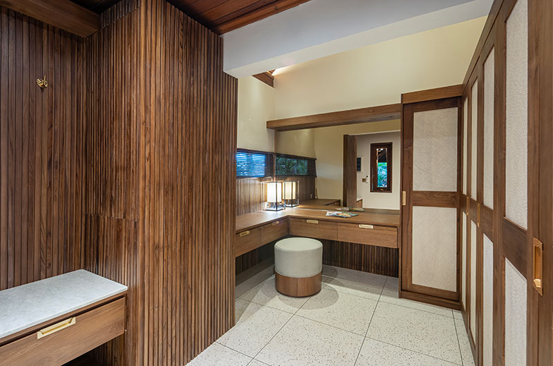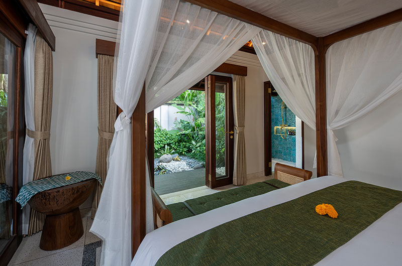 The fifth bedroom occupies its own pavilion. The room features a king-sized bed and a walk-in wardrobe. The adjoining bathroom opens to a beautiful private garden.