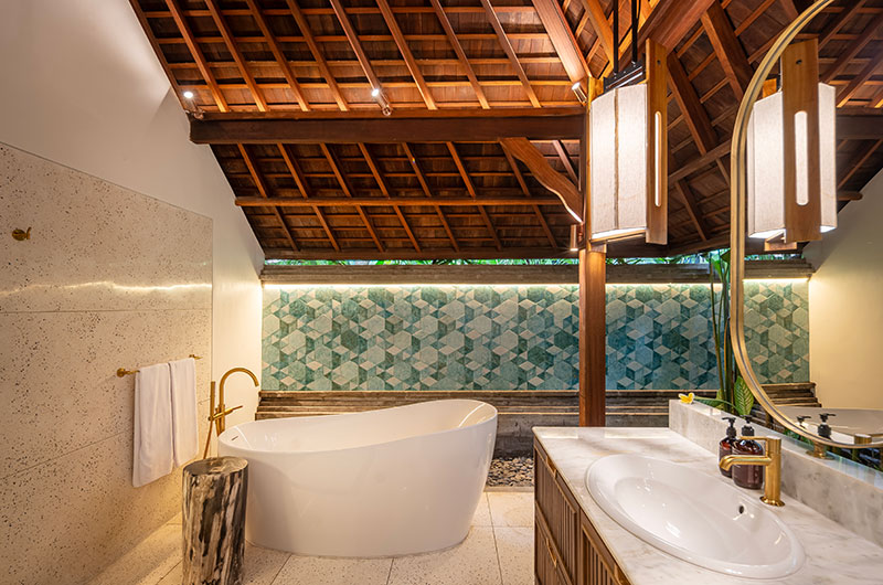 The Suaka Baliaga is a seven-bedroom villa that’s divided into multiple pavilions surrounded by tropical gardens. The villa features open plan living and dining areas, game room, spa room, media room, large swimming pool, infrared sauna, and outdoor Jacuzzis. Two of the bedrooms are housed in the same pavilion and share a bathroom between them, creating a Family Suite that’s ideal for parents wanting to keep the kids close by.