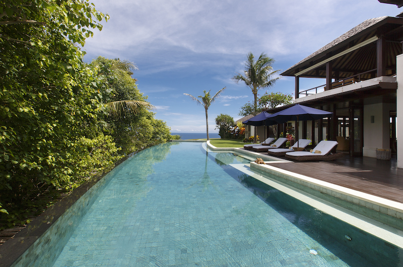 Villa Nora incorporates a private meditation platform in its traditional Balinese design. Guests will definitely fall in love with the view from the 25 meter infinity fool that overlooks both the ocean and the gorge between Villa Chintamani. On the cliff edge sits a huge bale where guests can relax while enjoying the stunning views of the Indian Ocean.