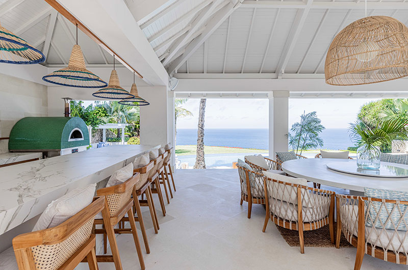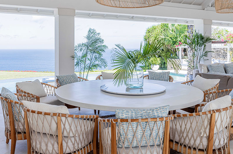 The Bali villas have two private dining areas, two designer kitchens, two media rooms and an abundance of space both indoors and outdoors for entertainment. Three bales for blissful relaxation are set in the lush garden and two on the cliff’s edge.