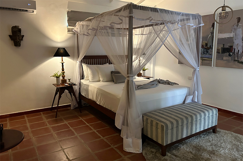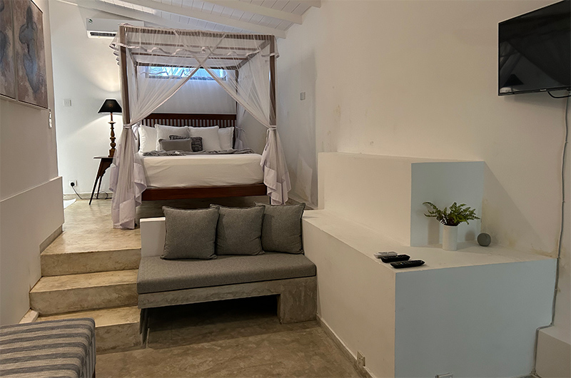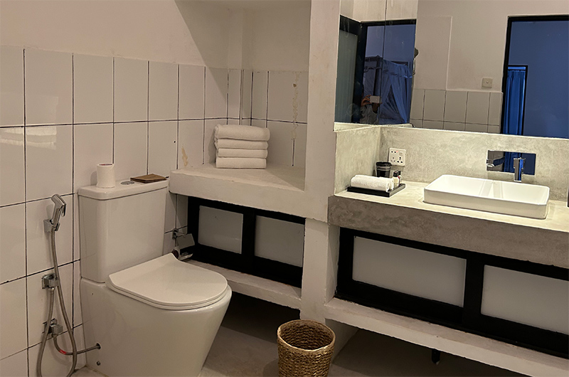 This lovely house is tucked away behind the beach so there are no views and potentially loads of insects being next to a bit of jungle. It is well set out with 2 bedrooms in the main house and another 2 in a separate part of the garden. All bedrooms have an ensuite and toiletries provided and are spacious and well-presented.