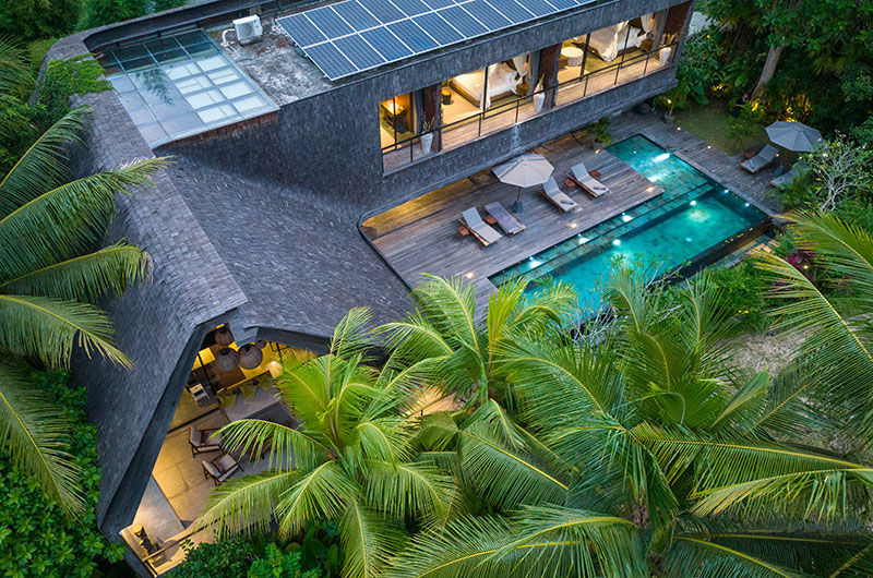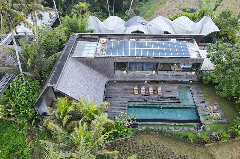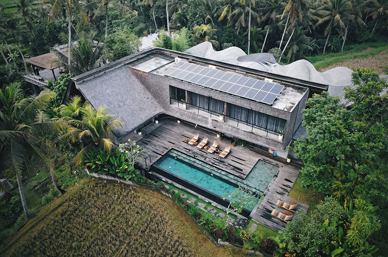 Let your spirit soar at The Wing Bali. Nestled amid rain forest and rice fields in Ubud, this stunning villa brings you to the heart of Bali. The Wing Bali celebrates its serene surroundings and elevates the whole experience with architecture that seems to defy reality. The living areas are housed beneath a sky-high dome, with full wall glass blurring the lines between indoor and outdoor spaces. Gazing over a serene blue pool and lush greenery that seems to go on forever, The Wing Bali invites you to press pause and tune into Bali’s healing frequencies. Solar panels perched on the roof ensure that your stay will have minimal impact on the island’s delicate ecosystem. If you’re travelling with a larger group, Bond Bali with five bedrooms is located next door.