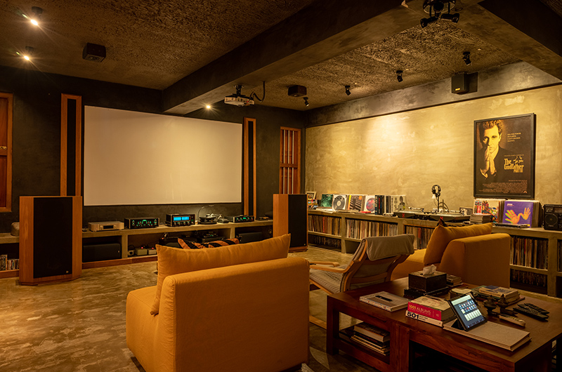 The cinema room is a space where guests can truly be immersed in silver screen magic and get lost in great music. The room features a massive projector screen and an epic sound system with cosy arm chairs to relax on. The walls are adorned with classic movie posters and lined with an impressive collection of vinyl records. It truly is every cinema lover’s and audiophile’s dream!