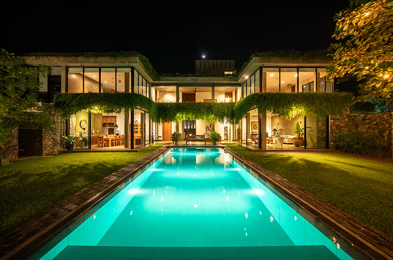Tranquil Waters more than lives up to its dreamy name. Built on the banks of Negombo Lagoon on the west coast of Sri Lanka, this elegant villa offers a setting and a sense of space that allow guests to press pause and breathe easy. The villa’s vast lawns gaze over the lagoon and provide ample room for fun and play or a serene moment of stillness. The three-bedroom villa is built in a U-shape around a sleek swimming pool with vast windows allowing guests to enjoy the beautiful scenery no matter which room they occupy.