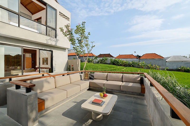 Uma Santai Canggu features seven bedrooms. The bedrooms are sleek and elegant – similar to suites you’d find in a luxury resort. The rooms are spread over two floors; four of them feature king-sized beds and three rooms come with twin beds. All rooms are adjoined by luxe ensuite bathrooms.