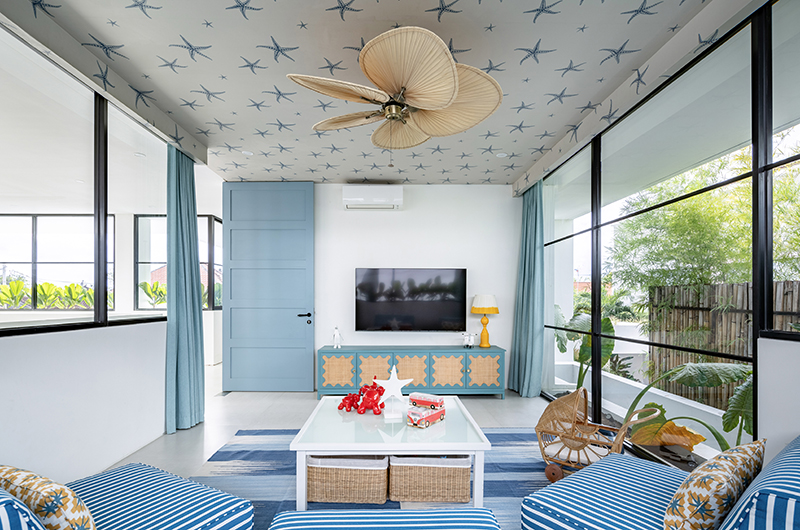 This five-bedroom villa is a fabulous choice for families, with one bunk bedroom sleeping up to seven kids. As the little ones doze off to sleep, they can admire the star patterned wallpaper which covers the bedroom ceiling – just one of the thoughtful details that will make you treasure your stay at Umbala The House for years to come. We invite you to read about our experience staying at Umbala the House.