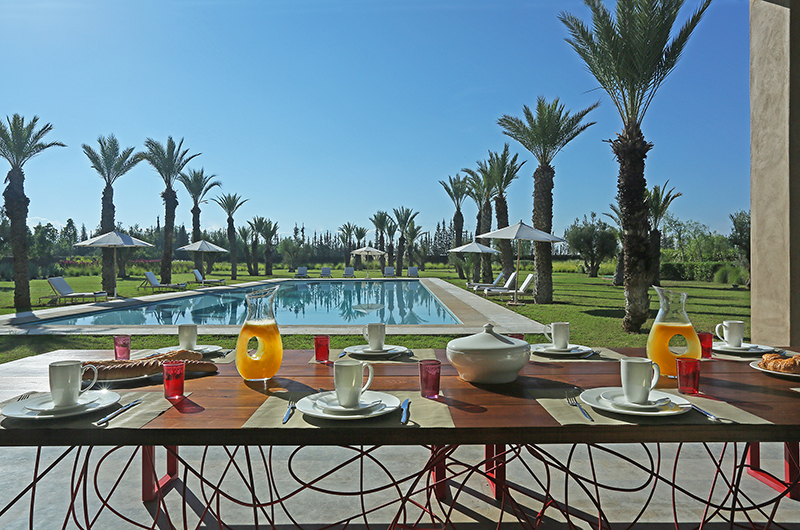 Villa Adnaa is blessed with a near-Olympic-sized pool measuring at 30 metres long and surrounded by palm trees. Surrounded by sun loungers and large gardens, the setup resembles that of your own private resort. The pool includes a generous shallow section. Climb up to the rooftop terrace to take in the panoramic views of your Moroccan surroundings.