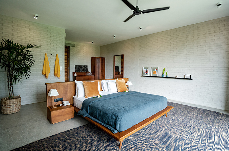Villa Alba features five bedrooms. These are sleek contemporary suites styled with minimalist modern furniture, calm colours and subtle Sri Lankan touches. All rooms are framed by full wall windows and private terraces to maximize the views. They all feature king-sized beds and are adjoined by an ensuite bathroom each.