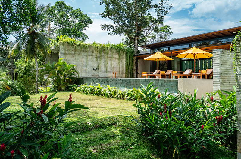 Villa Alba is surrounded by lush and verdant gardens where tropical trees hang heavy with exotic fruit. Guests can wander across the vast lawns and discover the vegetables, herbs and spices that grow on the property – the villa staff will be happy to introduce you to the local flora. At the heart of the property sits a magnificent 12-metre-long pool that feels like your own private jungle oasis, surrounded by lush greenery on all sides and gazing out to the mesmerizing paddy fields. The poolside deck is dotted with sun loungers and parasols – the perfect spot to soak up the sun while admiring those lush panoramas.