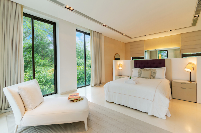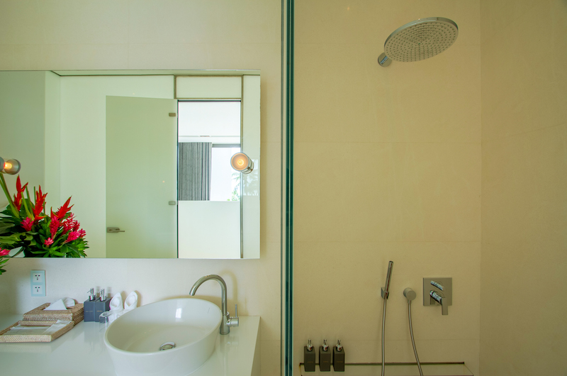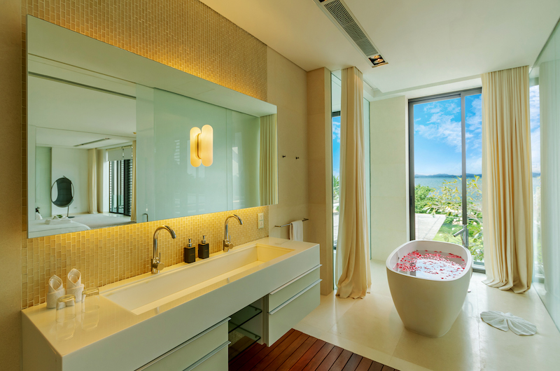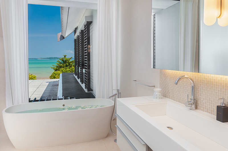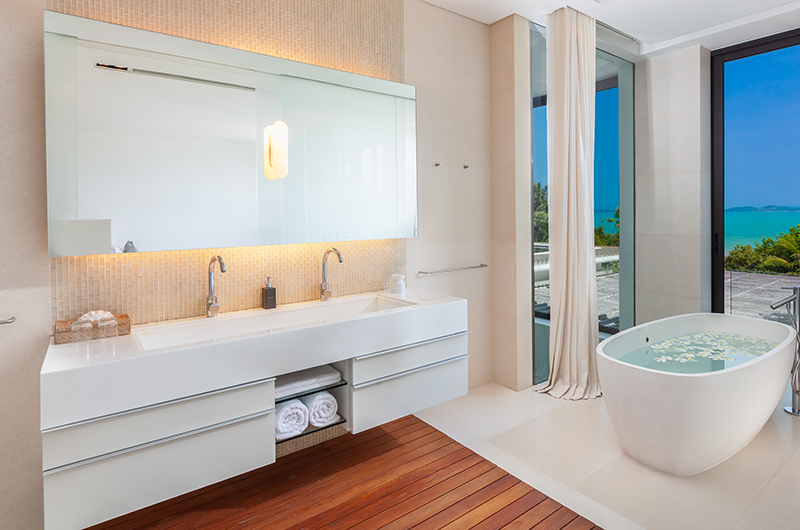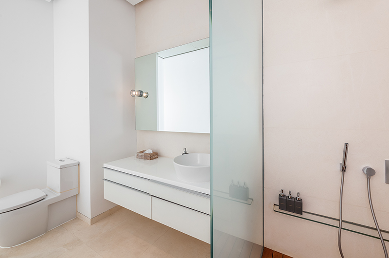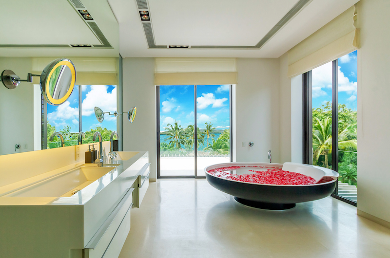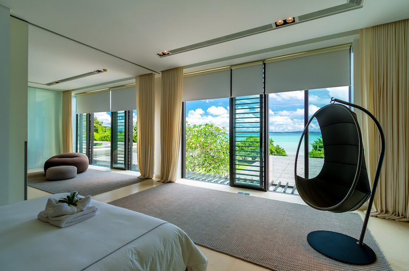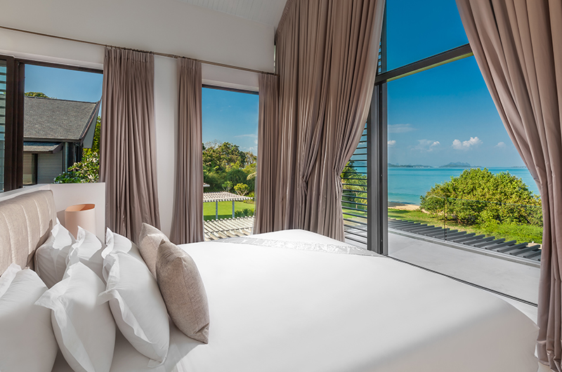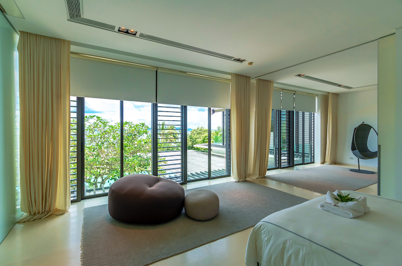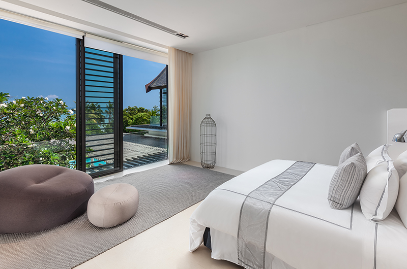 Another sea-view room housed on the upper floor, the fifth bedroom comes with a king-sized bed and an ensuite bathroom with a bathtub and rain shower.