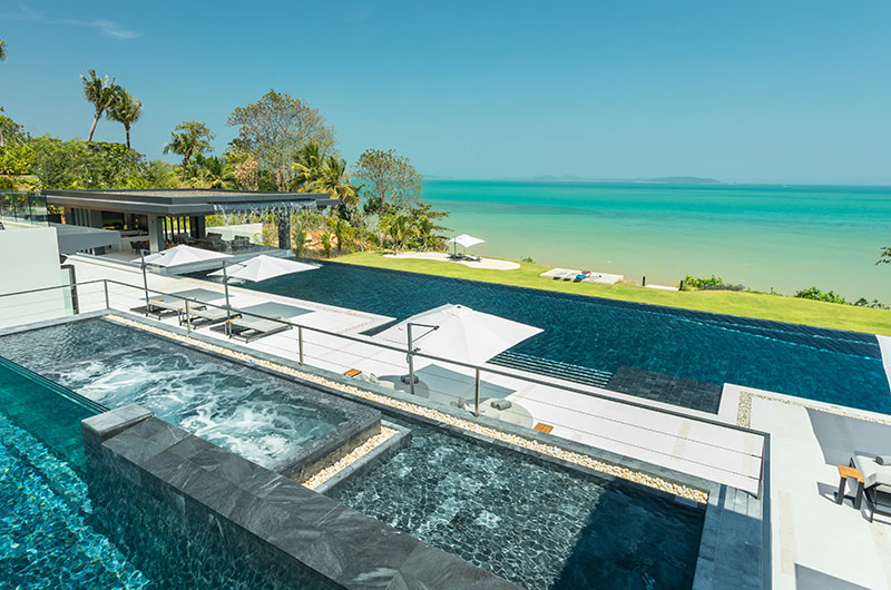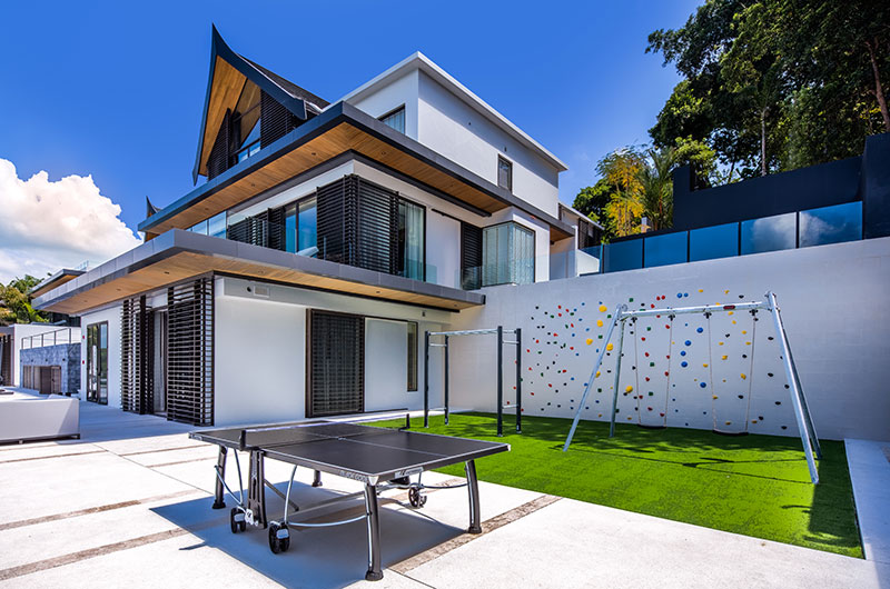 Villa Amaravida is dripping with luxury on all levels. The main pool is a staggering 38 metres long and opens to fabulous ocean panoramas. There’s even a diving board to help you make a splash. The pool is surrounded by an extensive deck with ample sun loungers and day beds, with a Sonos sound system and outdoor showers adding entertainment and convenience. The poolside sala offers a gorgeous setting for dining and lounging in style. There is a second infinity pool and adjoining Jacuzzi one level above the main pool, and a huge, 16-person Jacuzzi up on the rooftop terrace. As the grownups sit back and relax, the kids will have a blast at the outdoor playground which comes with a climbing wall, swing set, ping-pong table, and monkey bars. Guests also enjoy access to the villa’s ample lawns and manmade beach waiting right below.