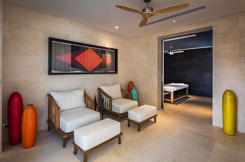 Go ahead and pamper yourself in the villa’s glamourous spa. These facilities have everything you need for relaxing, including two massage beds, foot massage chairs, and a steam room. The space is fitted with a sound system to help set the mood. The adjoining bathroom is fitted with a Jacuzzi, showers, dual vanities, and a toilet.