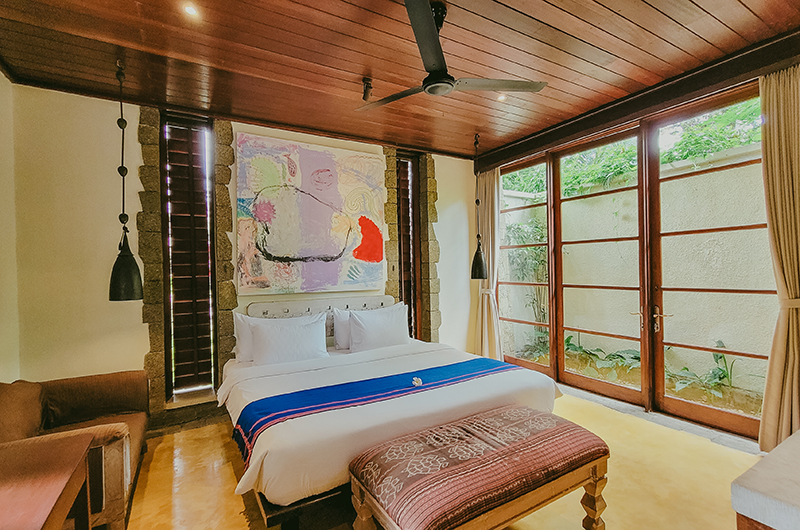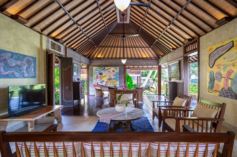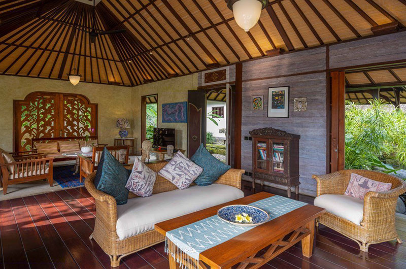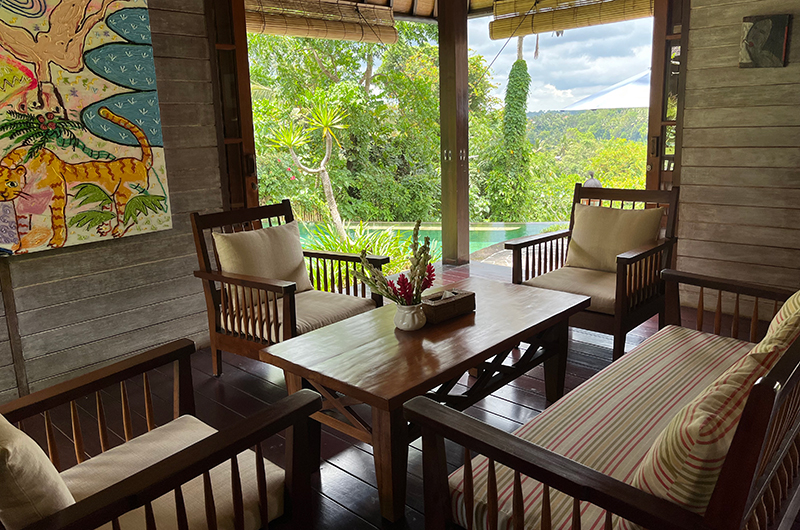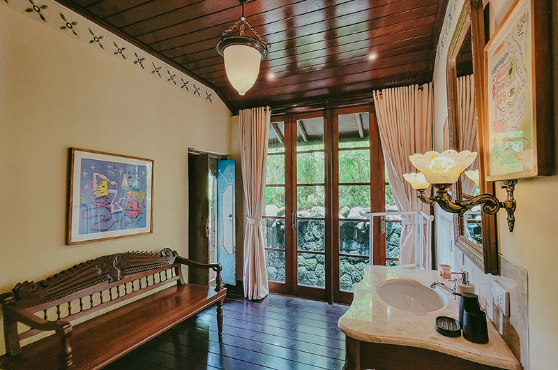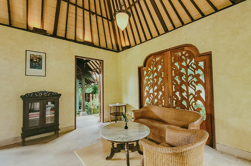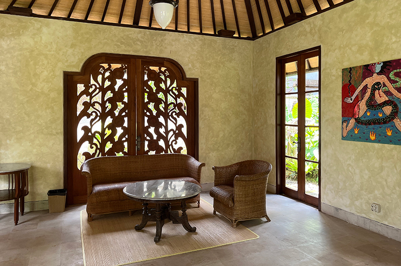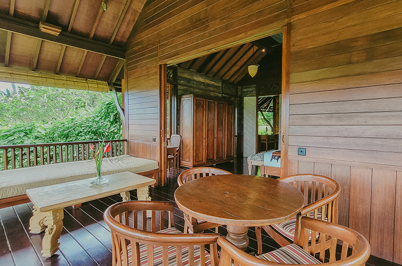 Villa Amaru has an enclosed living area with sliding glass doors that look out to the garden. You can open louvred wooden shutters to let in the cool breeze or you can close them for air-conditioned comfort.