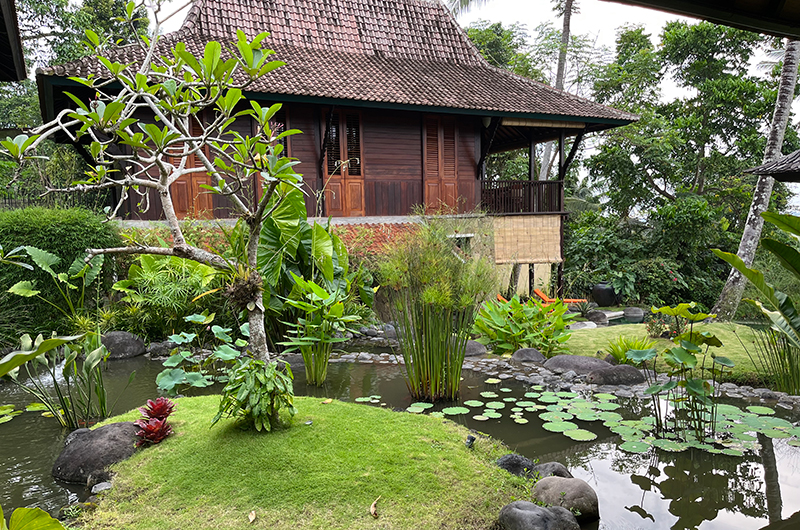 Villa Amaru is designed around a water garden with pavilions on three sides: a Malay house, a Balinese Balé and a Baronial guesthouse inspired by the hill stations in Dutch colonial times.